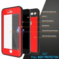 Apple IPhone 8 Waterproof Case, PUNKcase CRYSTAL 2.0 Red W/ Attached Screen Protector| Warranty