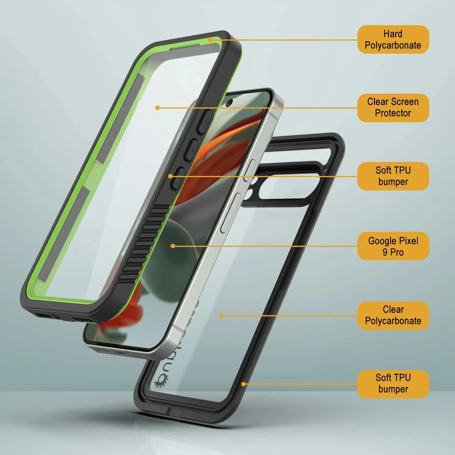 - ★ ULTRA SLIM FIT WITH BUILT-IN FUNCTIONALITY: Your Extreme Google Pixel 9 Pro case offers ultimate protection without the bulk| BUILT-IN SCREEN PROTECTOR: Imperceptible scratch-resistant & HD-clear screen guard for a lucid retina display with uncompromised TOUCH ID sensitivity | RAISED BEVEL: Extra Protection against drops | UNPARALLED SOUND QUALITY: Newly designed sound membranes will keep your phone waterproof whilst ensuring crystal clear communications.