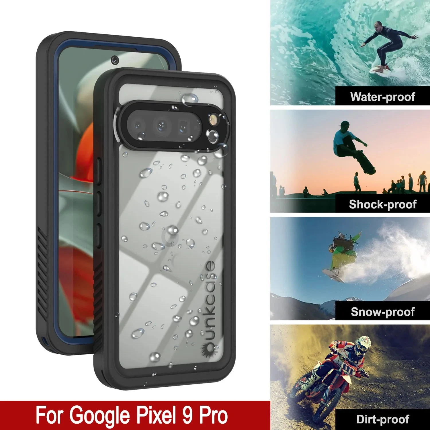 - ★ 100% PUNKPROOF: Take your Google Pixel 9 Pro on snorkelling trips, dusty deserts, muddy trails or downhill skiing – your Extreme case will keep you connected and protected no matter what adventure you find yourself in | WATERPROOF: IP-68 certified – submersible up to 20ft | DIRT & DUSTPROOF: Advanced Sealing Protection blocks dirt & dust from clogging your ports | SNOWPROOF: Completely closed to snow & ice | SHOCKPROOF: Military-grade ruggedness – protect your Google Pixel 9 Pro from falls up to 6.6ft.