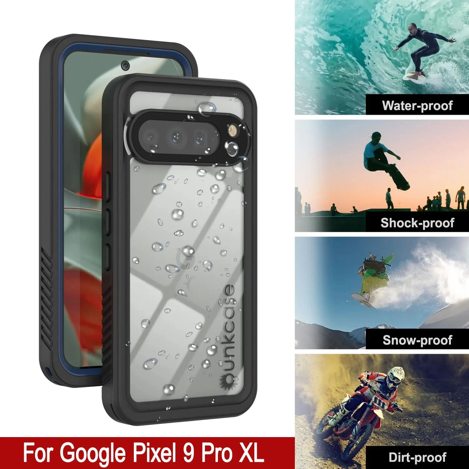 - ā 100% PUNKPROOF: Take your Google Pixel 9Ā ProĀ XLon snorkelling trips, dusty deserts, muddy trails or downhill skiing – your Extreme case will keep you connected and protected no matter what adventure you find yourself in | WATERPROOF: IP-68 certified – submersible up to 20ft | DIRT & DUSTPROOF: Advanced Sealing Protection blocks dirt & dust from clogging your ports | SNOWPROOF: Completely closed to snow & ice | SHOCKPROOF: Military-grade ruggedness – protect your Google Pixel 9Ā ProĀ XLĀ from falls up to 6.6ft.