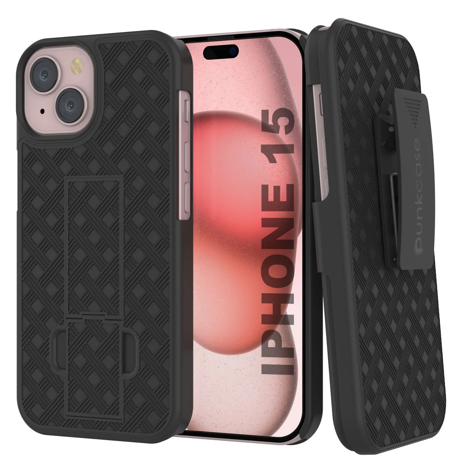 - ★ PUNKCASE iPhone 15 HOLSTER BELT CLIP CASE: Ultra-versatile & durable two-piece Hybrid case with secure belt clip functionality, integrated kickstand, and non-slip grip. Carrying your iPhone 15 with you couldn’t be more convenient