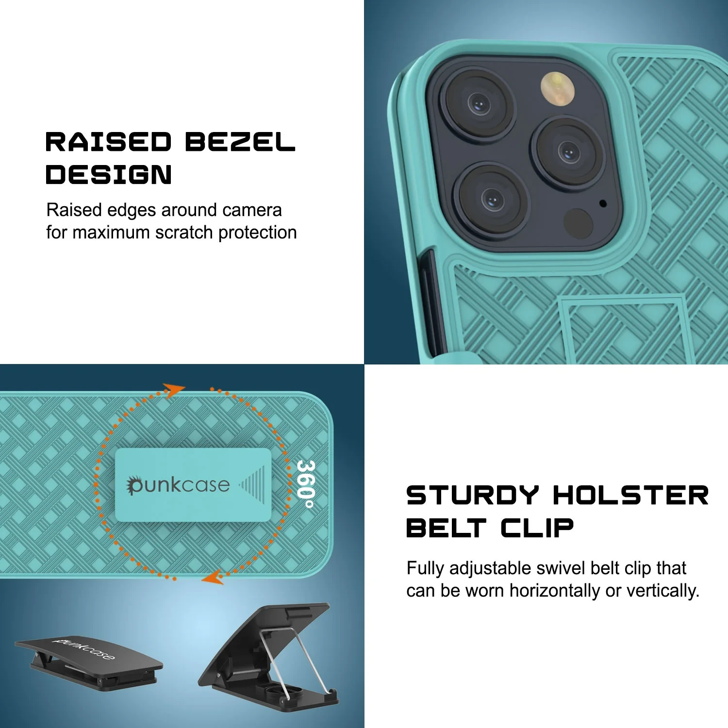 - ★ PUNKCASE iPhone 15 Pro HOLSTER BELT CLIP CASE: Ultra-versatile & durable two-piece Hybrid case with secure belt clip functionality, integrated kickstand, and non-slip grip. Carrying your iPhone 15 Pro with you couldn’t be more convenient