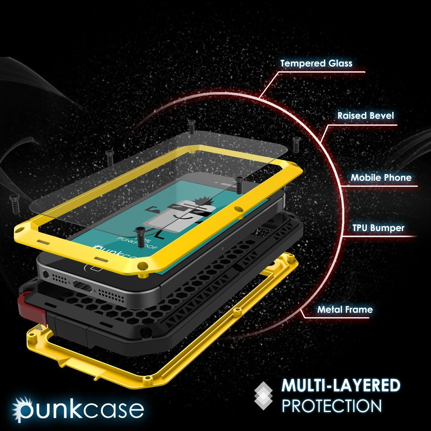 - The Punkcase® METALLIC comes with a TEMPERED Glass Armor 9H 0.33mm thick glass screen protector built in