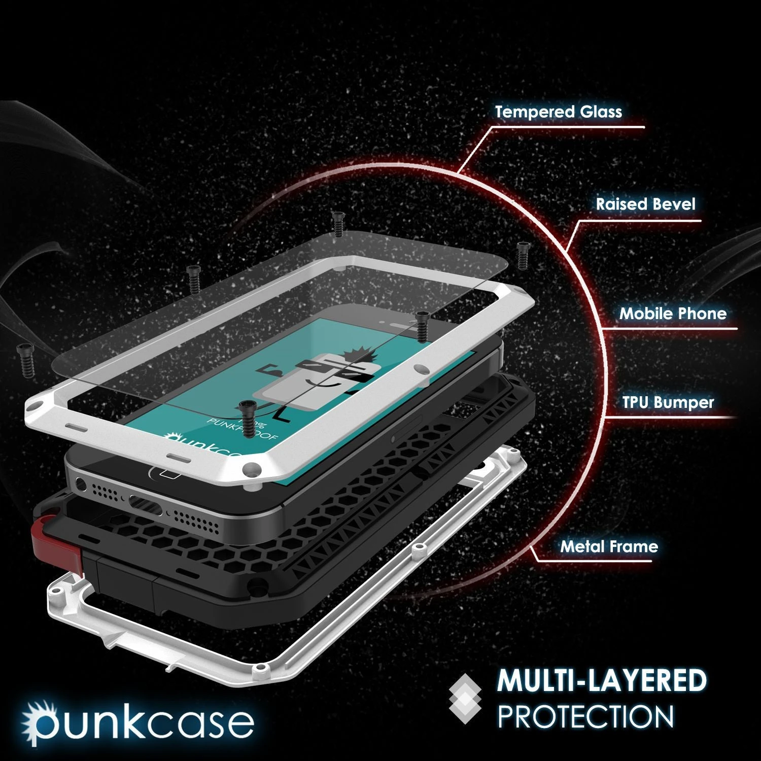- The Punkcase® METALLIC comes with a TEMPERED Glass Armor 9H 0.33mm thick glass screen protector built in