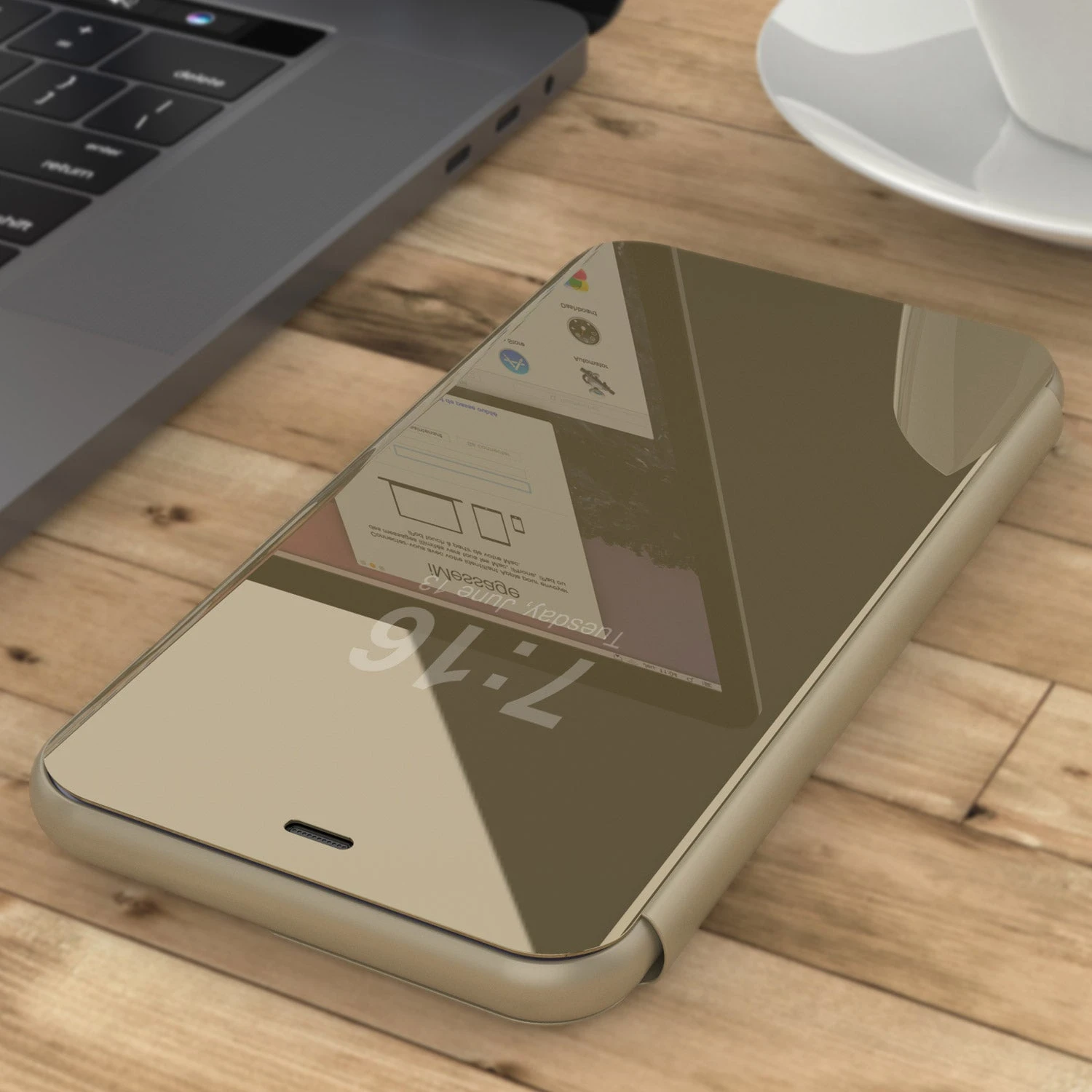 - ★ ULTRA SLICK FLIP CASE DESIGN: Front made of scratch-resistant PLATED MIRROR allowing you to easily access all information with your case closed | Front Screen can be used as MIRROR | Back made of high-quality PU-Leather which can convert into a KICKSTAND for hands-free horizontal viewing