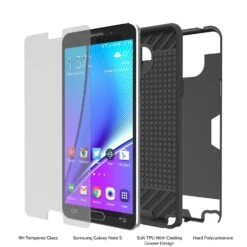 Galaxy Note 5 Case PunkCase CLUTCH Black Series Slim Armor Soft Cover Case W/ Tempered Glass